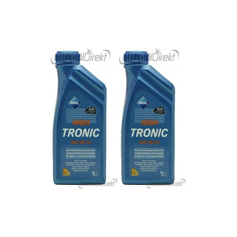 Aral HighTronic 5W-40 ist ein Hochleistungs-Leichtlaufmotorenöl in Aral-Synthese-Technologie mit breitem Einsatzspektrum. Die ausgewogene Formulierung erfüllt auch die hohen Verschleißanforderungen nach VW 505 01 (Pumpe-Düse Spezifikation) und anderer Hersteller. Auch für Benzinmotoren geeignet (Herstellerspezifikationen beachten). Das Motorenöl bietet auch ein Kraftstoffeinsparpotential und trägt somit zur Schonung der Umwelt bei.