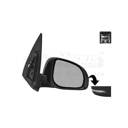 Einbauseite: rechts | Farbe: schwarz | Außen-/Innenspiegel: Komplettspiegel, konvex, für elektr.Spiegelverstellung, beheizbar | Leuchtefunktion: mit Blinklicht | chem. Eigenschaft: überlackierbar | für Facelift: 1 | paarige Artikelnummer: 8248807 | Qualität: Hagus