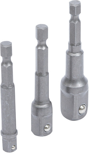 BGS 8204 Adapter-Satz für Bohrmaschinen | Antrieb Außensechskant 6,3 mm (1/4"") | Abtrieb Außenvierkant 6,3 mm (1/4"") / 10 mm (3/8"") / 12,5 mm (1/2"") | 3-tlg.