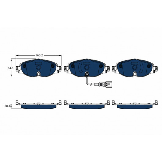 Herstellereinschränkung: TRW | Breite [mm]: 160,2 | Höhe [mm]: 64,5 | Dicke/Stärke [mm]: 20,4 | Verschleißwarnkontakt: inkl. Verschleißwarnkontakt | Anzahl Verschleißanzeiger [pro Achse]: 1 | Warnkontaktlänge [mm]: 170 | Ergänzungsartikel/Ergänzende Info: mit Zubehör | laufrichtungsgebunden: 1 | Fahrzeugausstattung: für Fahrzeuge mit Elektromotor | Bremsanlage: geräuscharme Bremsbeläge | Prüfzeichen: E9 90R- 02A1062/3374