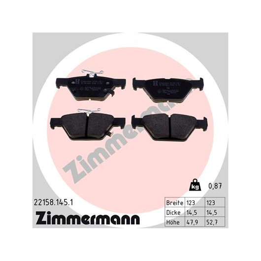 Passende Fahrzeuge für Ersatzteil ZIMMERMANN 22158.145.1 - Bremsbelagsatz, Scheibenbremse