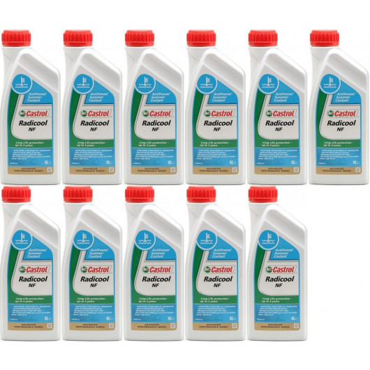 Castrol Radicool NF ist ein silikathaltiges Kühlflüssigkeitskonzentrat und kann in Benzin- und Dieselmotoren (auch Aluminium und Grauguss) eingesetzt werden. Die optimale Wirkung bietet Castrol Radicool NF in einem Mischungsverhältnis von 1:1 mit Wasser. Dies ergibt eine Frostsicherheit bis -37°C und den besten Korrosionsschutz. Castrol Radicool NF nicht unverdünnt einsetzen!