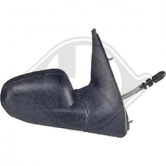 Einbauseite: rechts | Farbe: schwarz | Zulassungsart: E-Typ-geprüft | Oberfläche: genarbt | Außen-/Innenspiegel: konvex, für manuelle Spiegelverstellung, Einstellung: Seilzug, Komplettspiegel | paarige Artikelnummer: 4412125