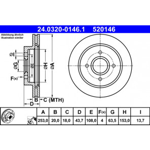 Außendurchmesser [mm]: 253,0 | Bremsscheibendicke [mm]: 20,0 | Mindestdicke [mm]: 18,0 | Bremsscheibenart: belüftet | Lochanzahl: 4 | Oberfläche: beschichtet | Lochkreis-Ø [mm]: 108,0 | Höhe [mm]: 43,7 | Zentrierungsdurchmesser [mm]: 63,5 | Innendurchmesser [mm]: 153,0 | Bohrung-Ø [mm]: 13,7 | MAPP-Code vorhanden: 1
