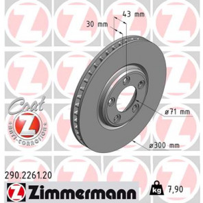 Bremsscheibenart: Innenbelüftet | Oberfläche: beschichtet | Außendurchmesser [mm]: 300 | Bremsscheibendicke [mm]: 30 | Höhe [mm]: 43 | Felge Lochzahl: 5 | Lochkreis-Ø [mm]: 108 | Zentrierungsdurchmesser [mm]: 71 | Mindestdicke [mm]: 28 | Gewicht[kg]: 7,85 | Bohrbild/Lochzahl: 5/5
