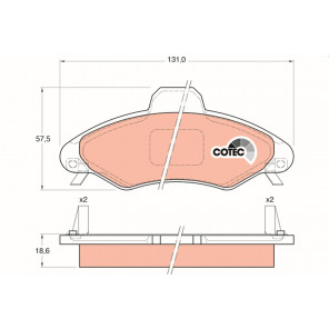 Herstellereinschränkung: BENDIX | Verschleißwarnkontakt: mit akustischer Verschleißwarnung | Prüfzeichen: E1 90R 01024/169 | Höhe [mm]: 57,5 | Breite [mm]: 131 | Dicke/Stärke [mm]: 18,6