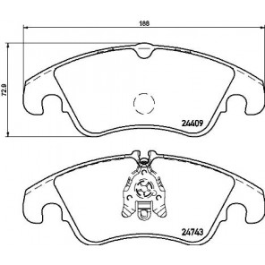 Bremssystem: TRW | Breite [mm]: 188 | Ergänzungsartikel/Ergänzende Info 2: mit Bremssattelschrauben | Höhe [mm]: 73 | WVA-Nummer: 24409, 24743 | Verschleißwarnkontakt: exkl. Verschleißwarnkontakt | Ergänzungsartikel/Ergänzende Info: ohne Zubehör | Dicke/Stärke [mm]: 18
