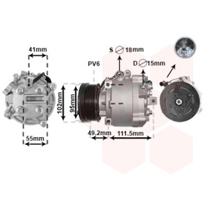 Kompressor-ID: QS90 | Riemenscheiben-Ø [mm]: 102 | Spannung [V]: 12 | Einlass-Ø [mm]: 18 | Auslass-Ø [mm]: 15 | Öl-Füllmenge [ml]: 120 | Riemenscheiben: mit Keilrippenriemenscheibe | Anzahl der Rillen: 6 | Kompressoröl: PAG 46 | Kältemittel: R 134a | Befestigungsart: 3-Punkt Befestigung | Steckergehäuseform: rund | Ergänzungsartikel/Ergänzende Info 2: mit einem Stecker | teilbefüllt: 1
