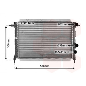 Kühlrippenmaterial: Aluminium | Kühlerausführung: Kühlrippen mechanisch gefügt | Material Wasserkasten (Kühler): Kunststoff | Gewindemaß: M22x1,5mm | Einlass-Ø 1 [mm]: 32 | Auslass-Ø 1 [mm]: 32 | Netzlänge [mm]: 350 | Netzbreite [mm]: 380 | Netztiefe [mm]: 20