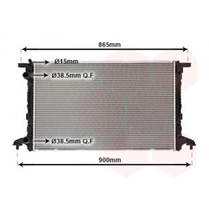 Kühlrippenmaterial: Aluminium | Kühlerausführung: Kühlrippen gelötet | Material Wasserkasten (Kühler): Kunststoff | Anschlusstechnik: QF | Einlass-Ø 1 [mm]: 38,5 | Auslass-Ø 1 [mm]: 38,5 | Rohrdurchmesser von [mm]: 15 | Netzlänge [mm]: 720 | Netzbreite [mm]: 468 | Netztiefe [mm]: 26
