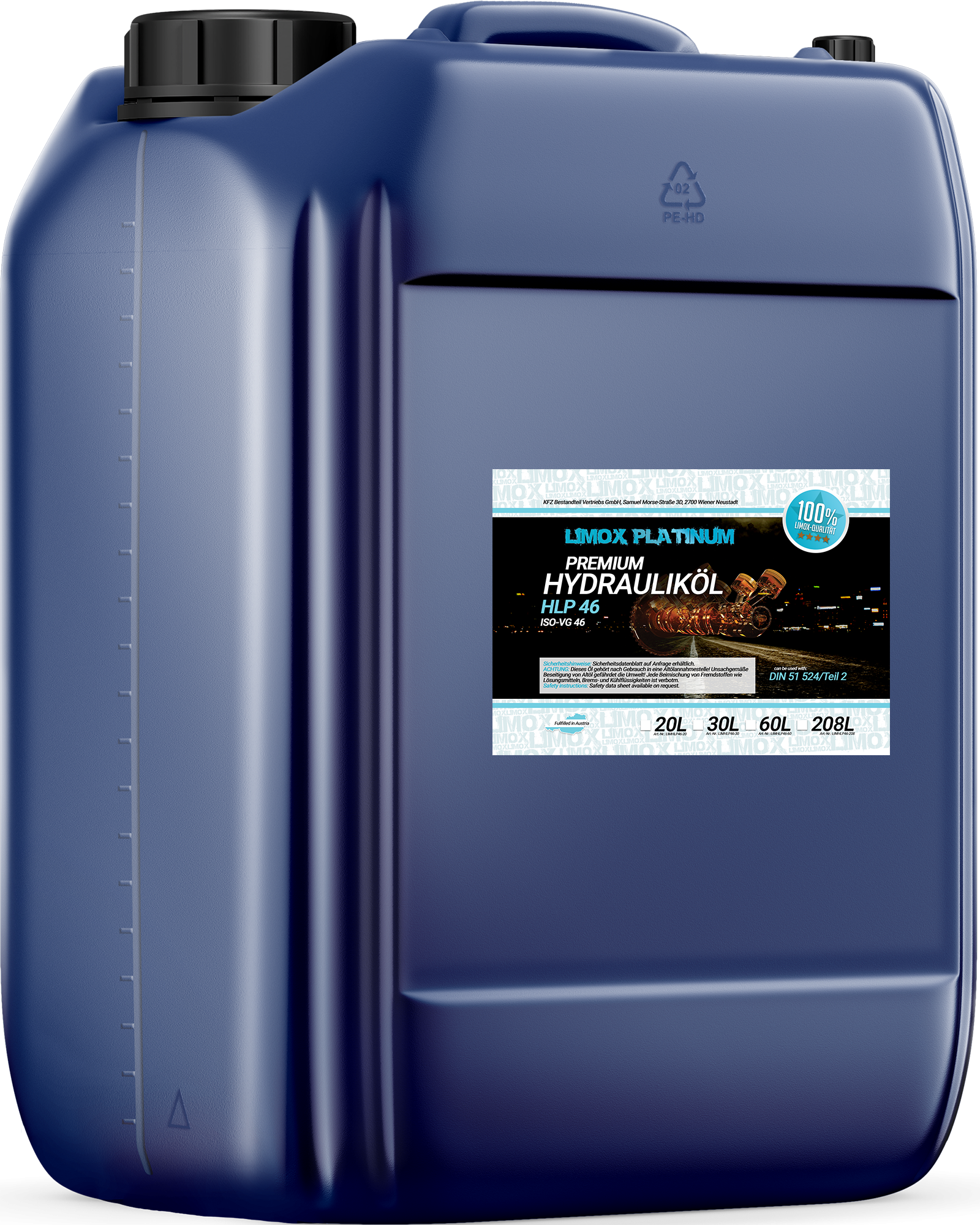 Das Hydrauliköl LIMOX HLP 46 ist in allen Hydraulikanlagen universell einsetzbar. Es hat sich in der Praxis in unzähligen Anlagen und Hydrauliksystemen bewährt. In thermisch hochbelasteten Hydraulikanlagen mit Hochdruckpumpen aller Ausführungen, in empfindlichen Steuerungssystemen und auch zur Versorgung von Kleingetrieben und zur Verwendung in Umlaufsystemen ist das Hydrauliköl LIMOX HLP 46 empfohlen.