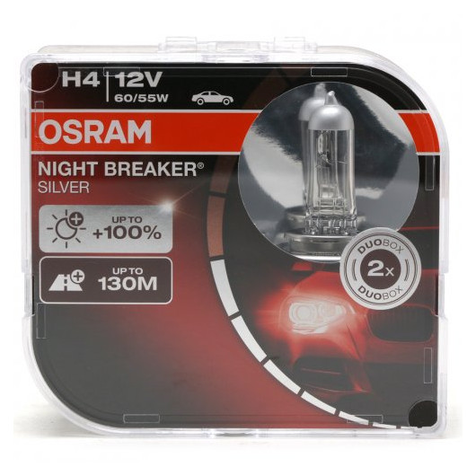 Mit der NIGHT BREAKER SILVER bietet OSRAM eine leistungsstarke und dabei langlebige Halogenlampe für Ihr Fahrzeug. Die OSRAM NIGHT BREAKER SILVER erzeugt im Vergleich zu den gesetzlichen Mindestanforderungen bis zu 100 % mehr Helligkeit mit einem bis zu 130 m langen Lichtkegel. Der Fahrer kann Verkehrsschilder, Hindernisse und Gefahren früher erkennen, sodass ihm mehr Zeit zum Reagieren bleibt. Außerdem überzeugen diese Autolampen durch ihr Preis-Leistungs-Verhältnis und das moderne Design mit einer attraktiven Silberkuppe (H4/H7/H11). Die perfekte Wahl für Fahrer mit hohen Ansprüchen an Lichtstärke und Lebensdauer.