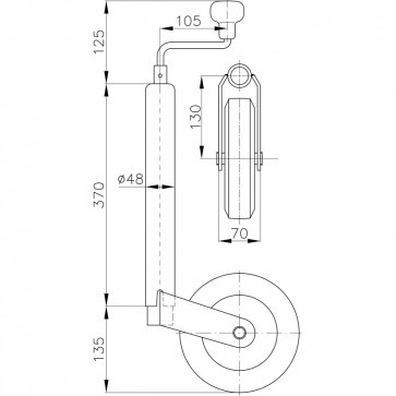 Stützrad Ø 48 mm, Winterhoff Vollgummirad mit Metallfelge Kurbel mit Drucklager Rad 200 x 50 mm Stützlast 150 kg Rohrlänge 370 mm Hub 220 mm Material Stahl, verzinkt Gewicht 4,65 kg