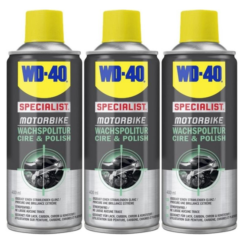 Diese Wachspolitur verleiht Ihrem Motorrad Hochglanz. Die Rezeptur enthält Carnaubawachs, eines der härtesten natürlichen Wachse, das für einen lang anhaltenden Glanz mit Nässeffekt sorgt. Das Produkt wirkt wasserabweisend, sodass Feuchtigkeit einfach am Lack abperlt und das Finish länger hält. Einfach anwendbar und streifenfrei. Einfach aufsprühen und anschließend mit einem sauberen Lappen runterpolieren.